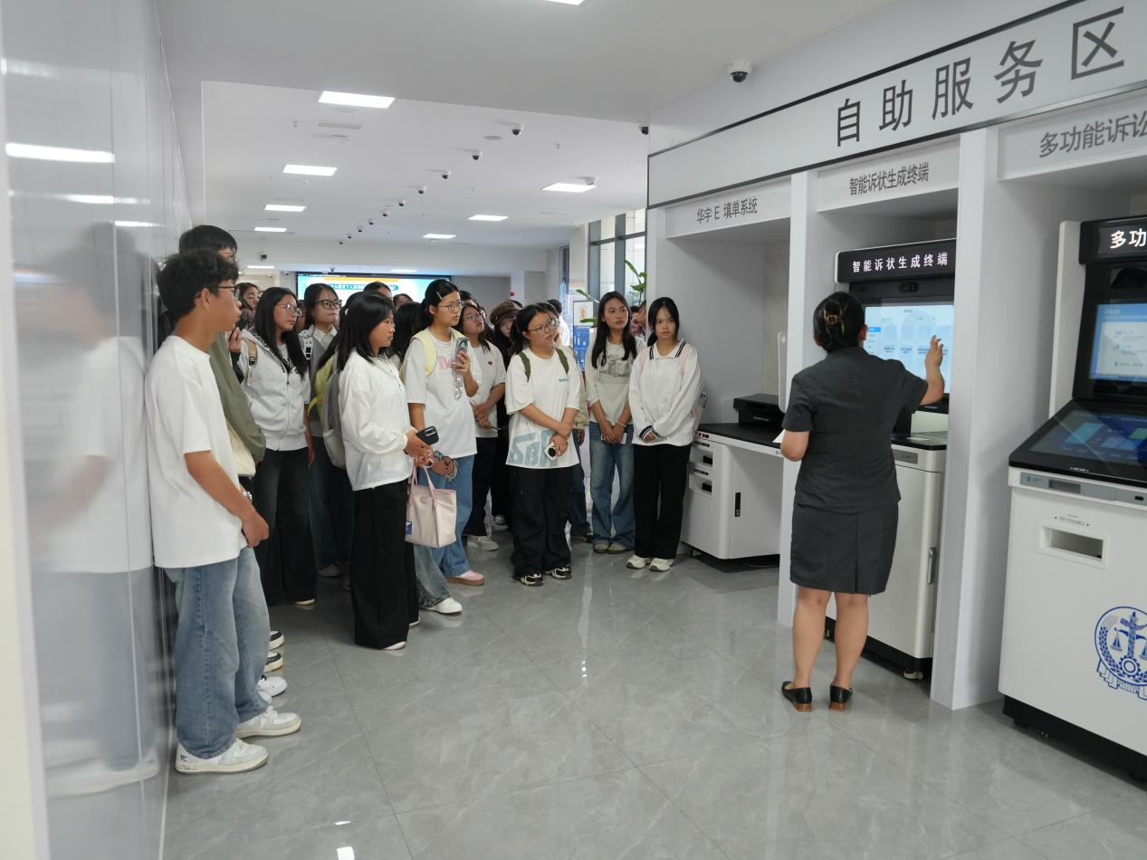 沉浸式逛法院,解锁司法新体验。法院工作人员现场演示智能立案、在线调解“一站式”服务,让“司法便民”看得见、摸得着。师生深入体验了诉讼服务的便民举措与信息化建设成果。