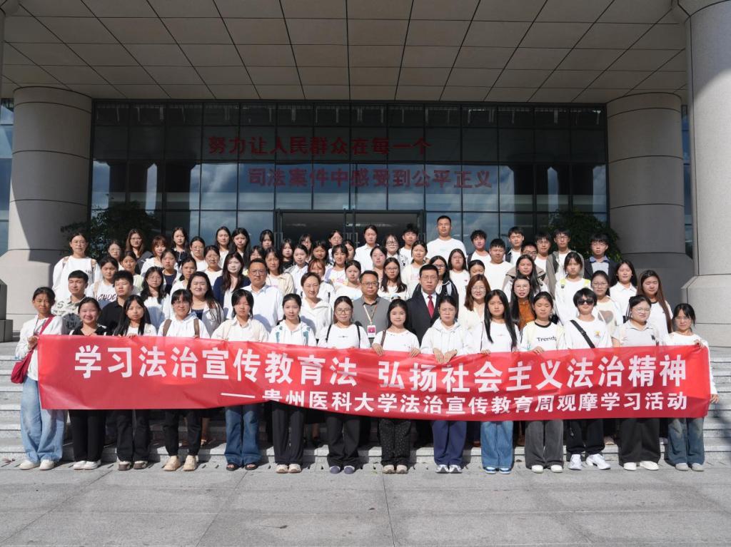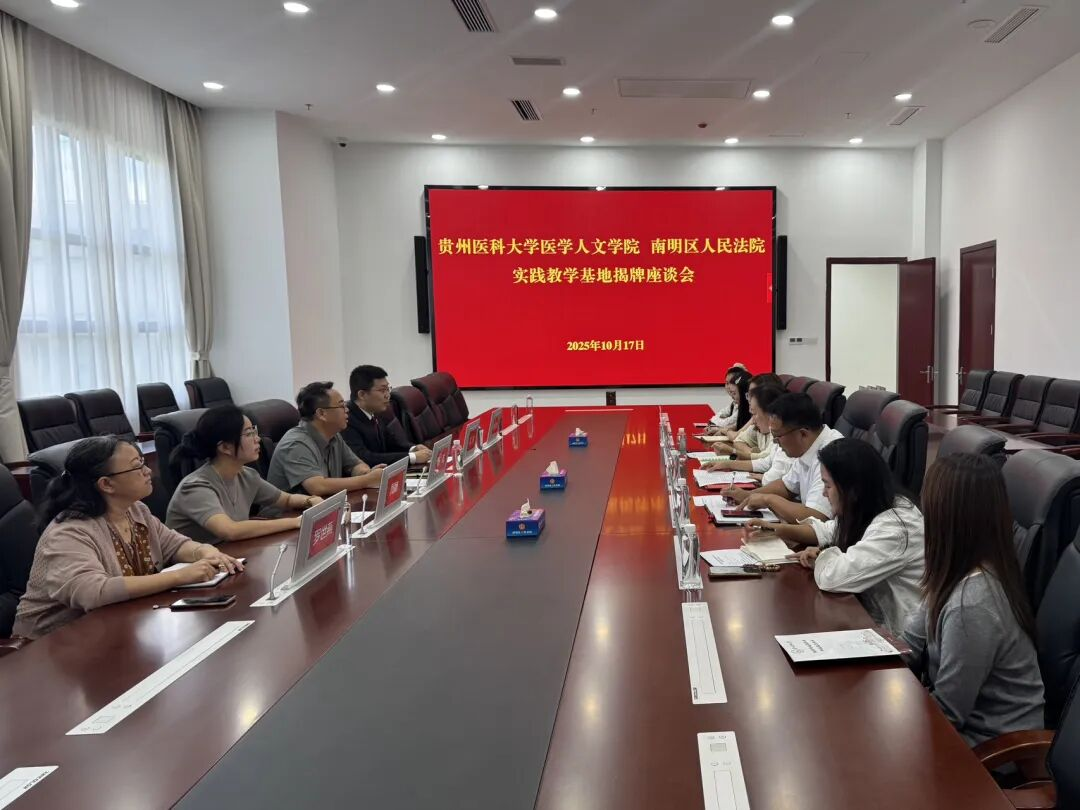 10月17日,学院党委副书记马琳娜带队到贵阳市南明区人民法院开展实践教学活动。南明区人民法院党组成员、政治部主任杨志、刑事审判庭庭长沈帅、政治部副主任周婧,学校党委宣传部新媒体中心主任李牧,学院教学科研管理科科长冯斌、团委书记马曾珍以及2025级法学专业学生等70余人参加此次活动,通过“参观+体验+座谈+共建”的形式搭建理论与实务沟通桥梁。