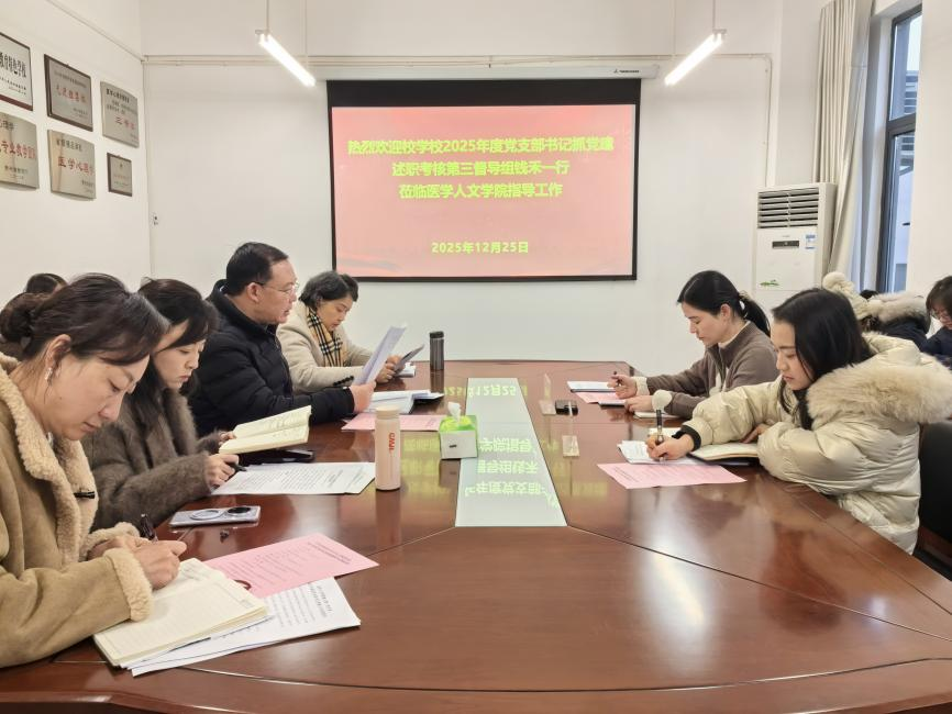 党委在善思楼2-40会议室开展了2025年度党支部书记抓党建述职评议考核工作,学校2025年度基层党支部书记抓党建述职考核第三督导组组长、学校党委宣传部副部长钱禾,联络员保莎到会指导,学院党政班子成员、各党支部支委成员参加。会议由学院党委委员、院长冯广卫主持。