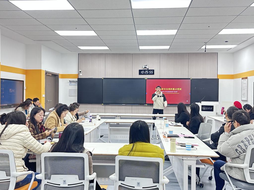 紧接着,军事理论教研室主任杨明就本学期《国家安全教育》课程的教学任务进行了部署,并组织开展了集体备课,凝聚教学共识。教研室教师刘梦凯围绕“科技安全”专题进行了教学分享,丰富了课程教学案例与内容。