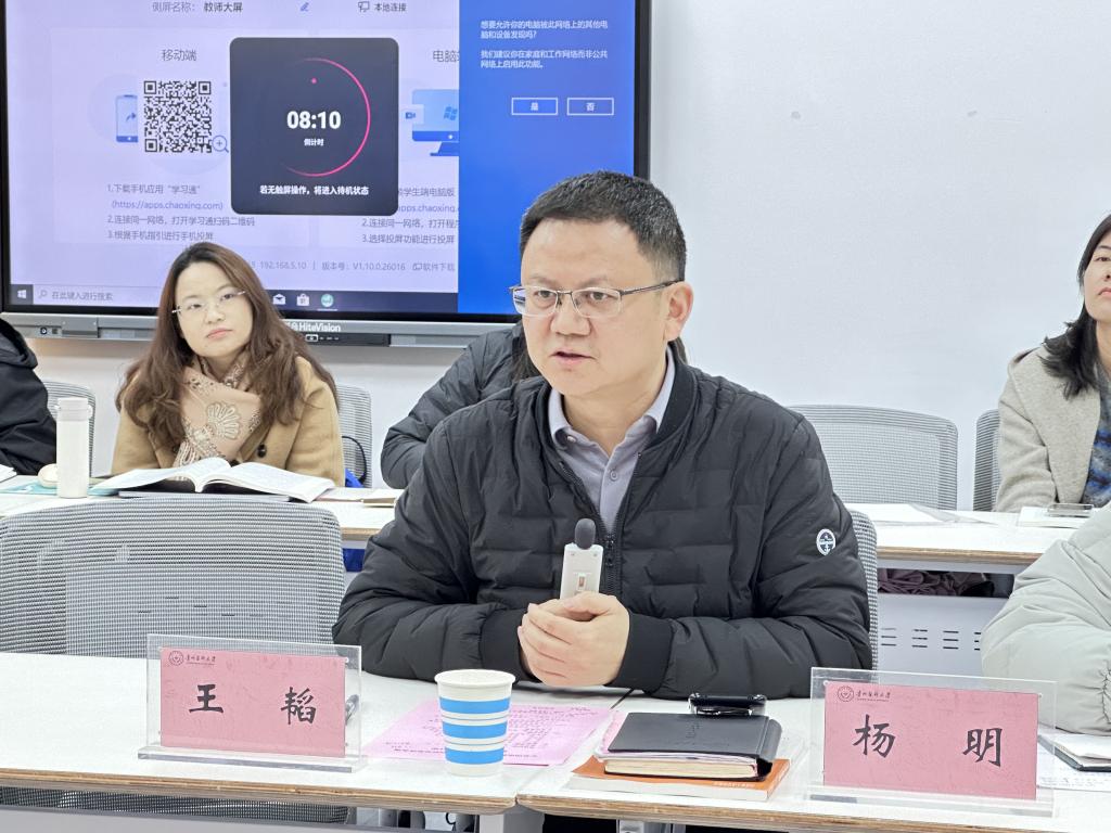 随后,杨明组织全体教师进行了政治理论学习,进一步强化了教师队伍的思想政治素养。王韬带领大家开展了师德师风教育专题学习,并领学了教研室相关规章制度,深化了对立德树人根本任务、教师职业行为准则及日常教学管理规范的认识。