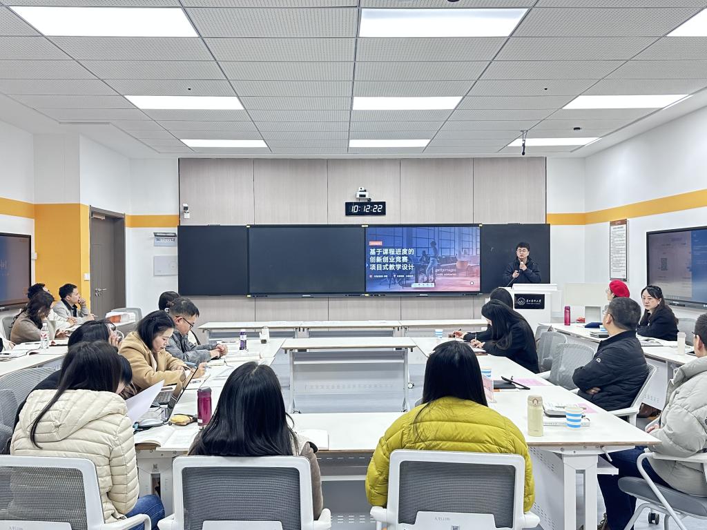 随后,教研室教师刘旭以“创赛项目式教学”为主题,分享了将创新创业竞赛融入教学实践的经验与思考,为创新教学模式提供了有益借鉴。