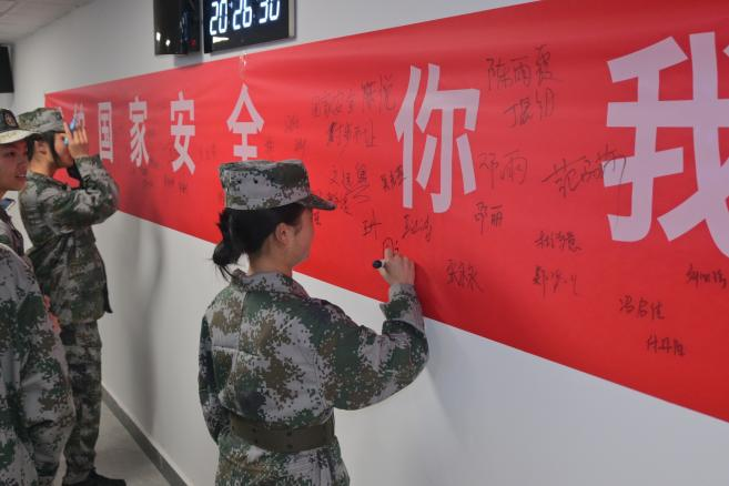 军事理论教研室结合《中华人民共和国国家安全法》《中华人民共和国反间谍法》等法律法规条文,融入校园安全案例、社会热点事件等内容设置“国家安全知识竞答”提升同学们的学习积极性。大家踊跃抢答、沉着应答,在紧张激烈的比拼中巩固了国家安全知识,强化了风险防范意识,展现出扎实的知识储备与良好的精神风貌。问答环节结束后,开展了“维护国家安全 你我共同参与”主题签名活动。同学们依次在主题横幅上郑重签名,以实际行动许下维护国家安全的庄严承诺,进一步强化了责任担当。