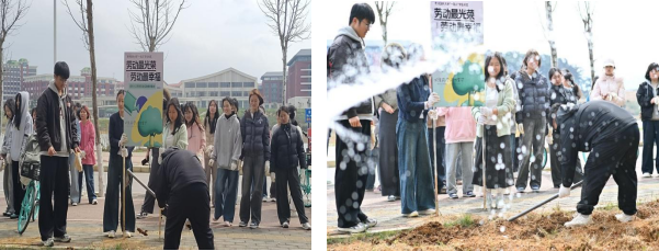 此次植树节劳动教育主题实践活动,不仅是一次动手实践的劳动历练,更是一堂生动的德育与生态教育课,让青年学子在亲身劳作中锤炼了实践本领、增强了动手能力,更厚植了团结协作的集体精神与勇于担当的责任意识,切实将劳动教育融入日常、落到实处,让“以劳树德、以劳增智、以劳强体、以劳育美”的理念深入人心。下一步,学院将对一食堂周边责任区挂牌认领,做好后续常态化浇水、除草、补播等管护工作,以实际行动践行绿色生态理念,用青春力量为美丽校园建设添砖加瓦,为推进“五育融合”、建设文明美丽校园注入持久青春动能。